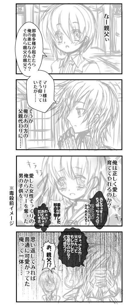 【アトファスの苦悩】 むしろマリー様に襲われてアスカを授かった系。 リフルが男には押せ押せなのは母ちゃんの血。 自分の嫁と無理矢理離婚させられた挙げ句、子育て一手に引き受けて 他の男との間に生まれた子供の面倒まで見させられてるっていうと本当に可哀想な男だ。 それで家空けてばかりだから自分の息子の方はふて腐れてやさぐれつつある。 でもそこで那由多を憎まない辺り、アスカの父ちゃんは人間出来てる。