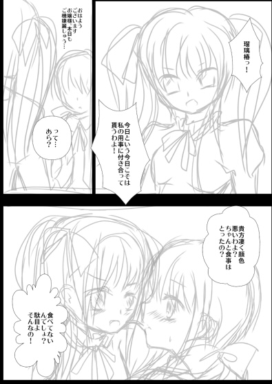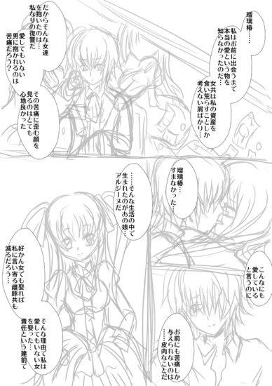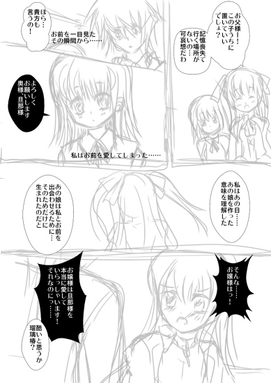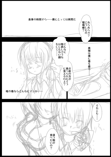 裏サイトのエロ瑠璃漫画の落書き 1章でいろいろ省略した話。この辺書くと18禁なるしね。 最近時間が無くて放置してます裏漫画。流れだけでもと一応載せる。 本番はないですけど、雰囲気注意。 惚れたお嬢様の父ちゃんやら母ちゃんに手ぇ出されるって言う主人公。 結局お嬢様死なせてしまうわ自分だけ生き残るわろくでもない人生。